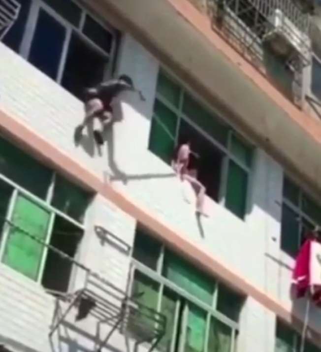 ▼9月26日上午,溫州市消防指揮中心接到警訊,一名女子坐在4樓窗台外,情緒非常激動。當地警消很快趕到現場,並耐心勸說女子。他們本想鋪設充氣緩衝墊,但因為公寓樓前有一道矮牆,緩衝墊無法放置。