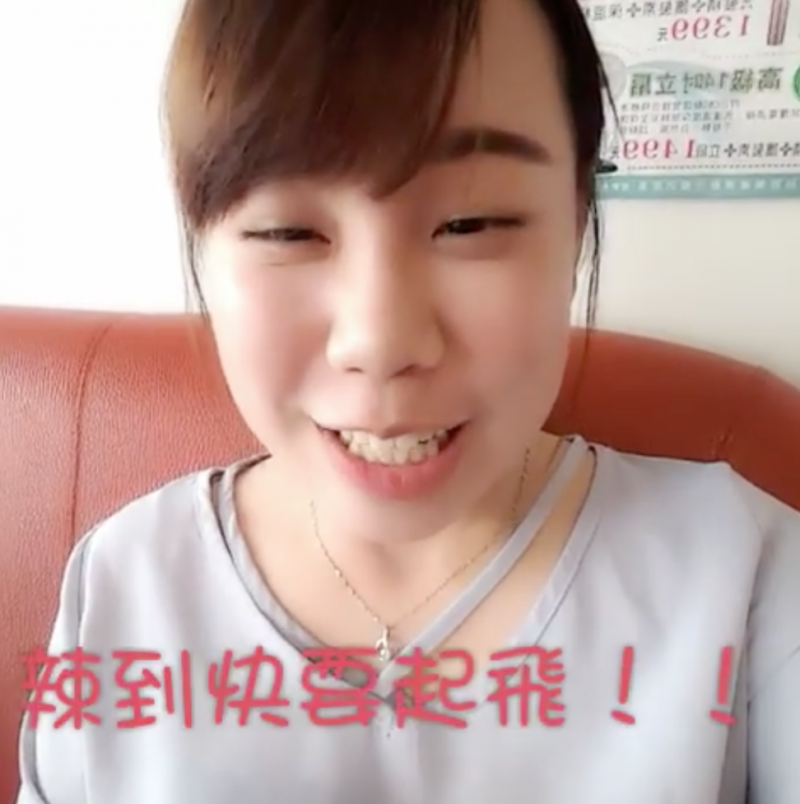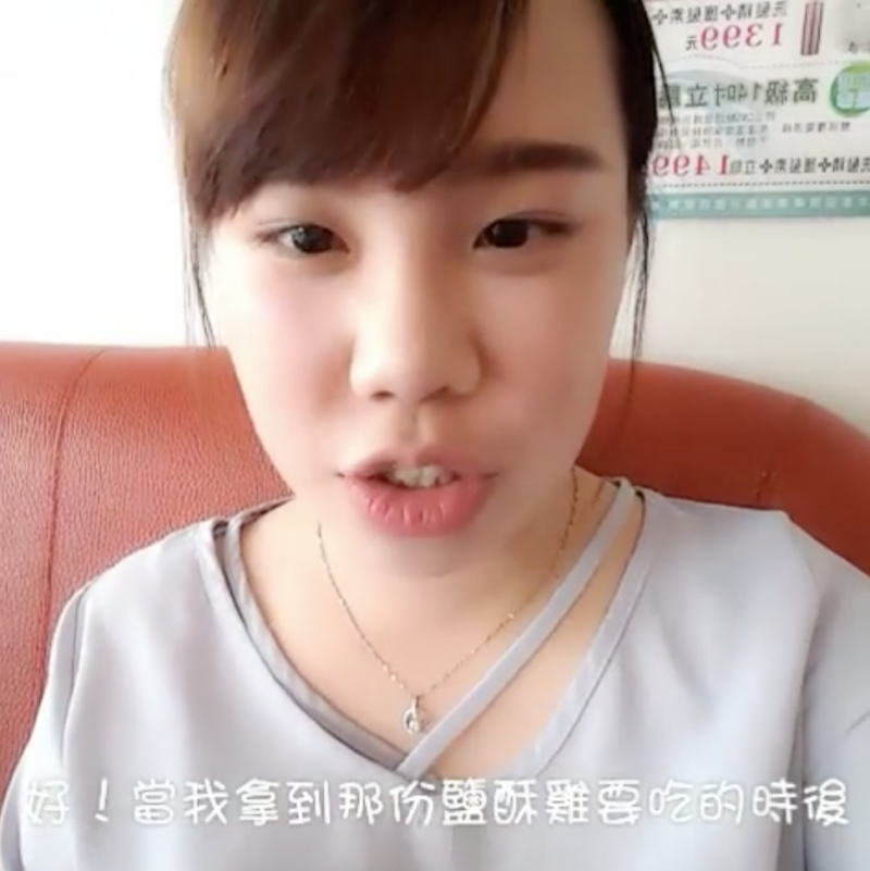 ▼當她吃下第一口鹹酥雞的時候,真的是辣到要起飛了!