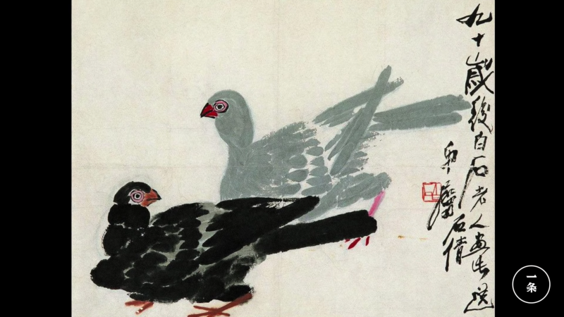▼這個作品是齊白石在1925年完成的,贈與北平名醫陳子林。直到上世紀50年代才轉至齊白石女弟子郭秀儀與黃琪翔夫婦秘藏。這一藏就珍藏在家中半個世紀。