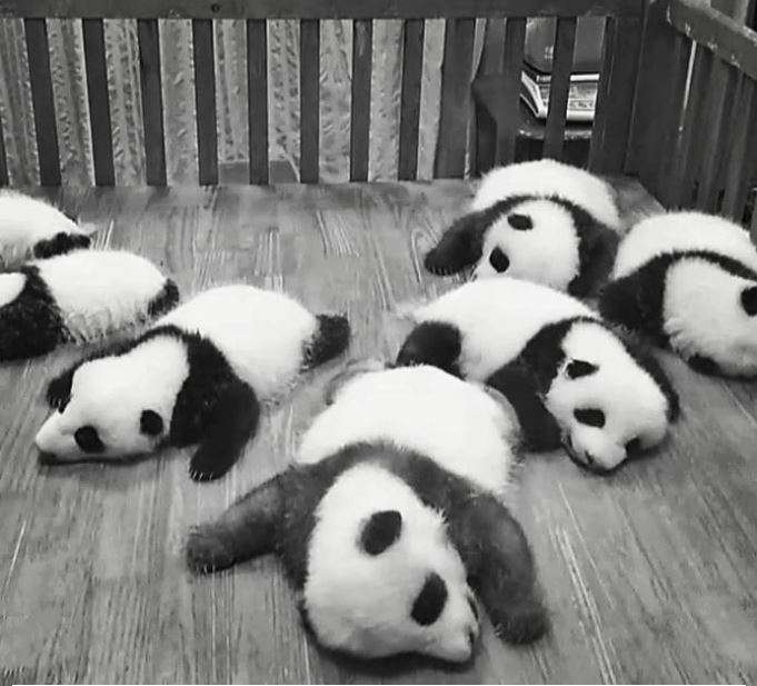 ▼熊貓寶寶們的集體午休時間,看上去軟綿綿的,好想抱一把你們這些小傢伙~