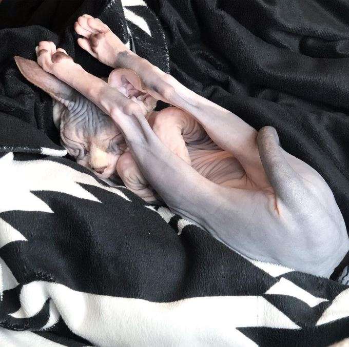 ▼你絕對是我看過史上柔軟度最好的無毛貓,這睡姿太skr了!