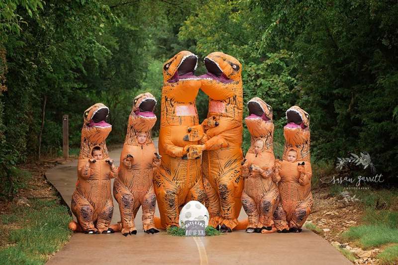 2018年10月10日在無論大小事都喜歡拍照留念的美國,拍攝孕婦寫真是非常平常的事。可是這名4個小孩的媽媽卻決定來點不一樣的,她找來了全家大小一起穿上充氣恐龍裝拍攝了這些獨一無二的照片,讓他們在網路上迅速爆紅!