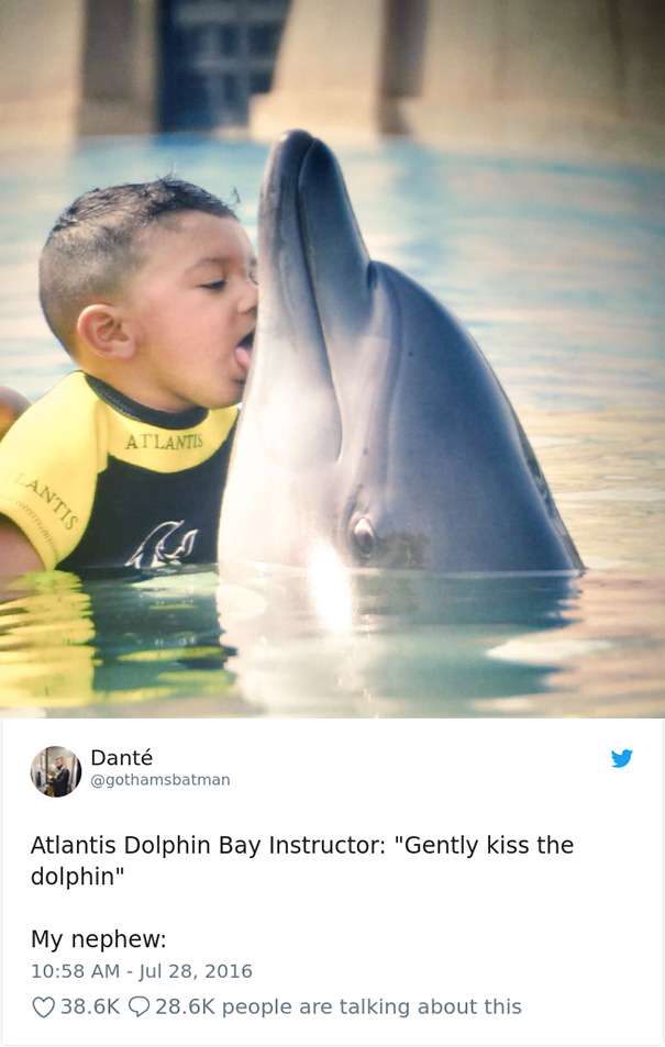 ▼「你可以輕吻海豚喔」,下一秒小男孩伸出舌頭…海豚都驚呆了。