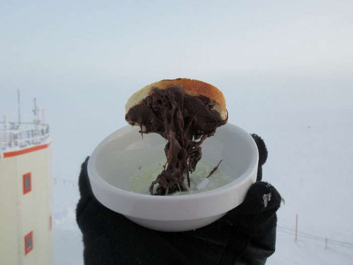 學者在南極「-80度」酷寒中煮菜 打顆蛋瞬間凍結成雕塑