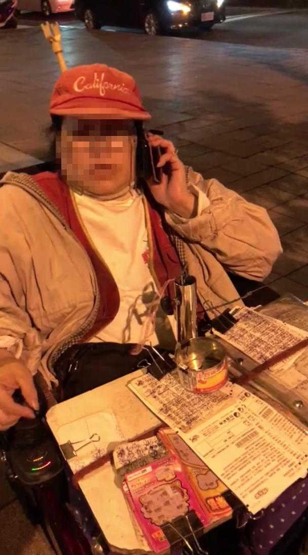 ▼原PO是在晚間10點左右,跟朋友道別後留在台大醫院門口跟身障阿姨買了一張彩券,當她要挑彩券時竟被阻止,說是已經幫她挑好了。「她就這樣從包包拿出一張彩券,說她精挑細選的,一定會中」。既然已經這麼說了,原PO也不疑有他,但是當她要刮時又被阻止,說是要幫忙刮,而且比較快!
