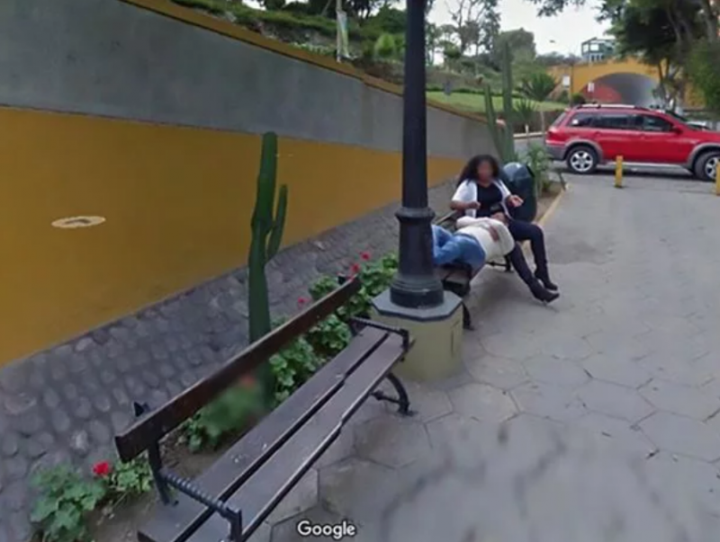 2018年10月12日夫妻離婚的原因竟然是因為Google地圖上的照片?秘魯一名男子在使用Google地圖的街景服務時候,居然看到一個很眼熟的女人坐在長凳上,拉近一看就認出她就是自己的太太!下一秒視線往下移,她的大腿上竟然躺了一個陌生男人⋯