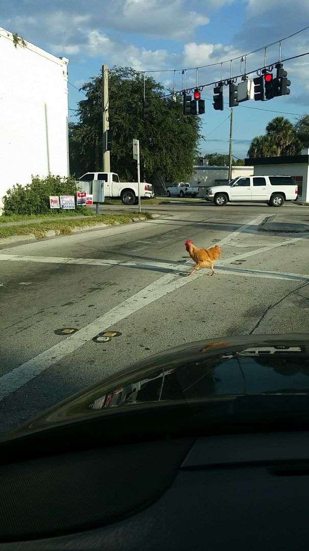 ▼公雞囂張過馬路。