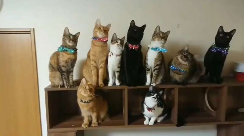 ▼看到9隻貓咪一起轉頭的畫面,是不是也感覺超可愛的呢?