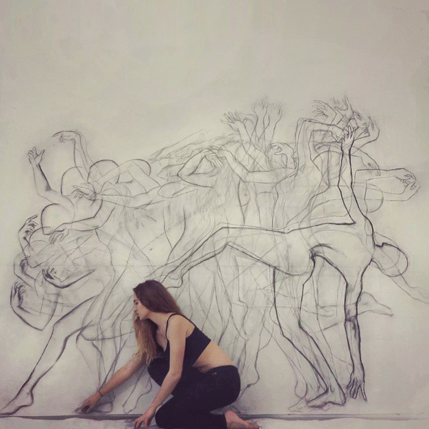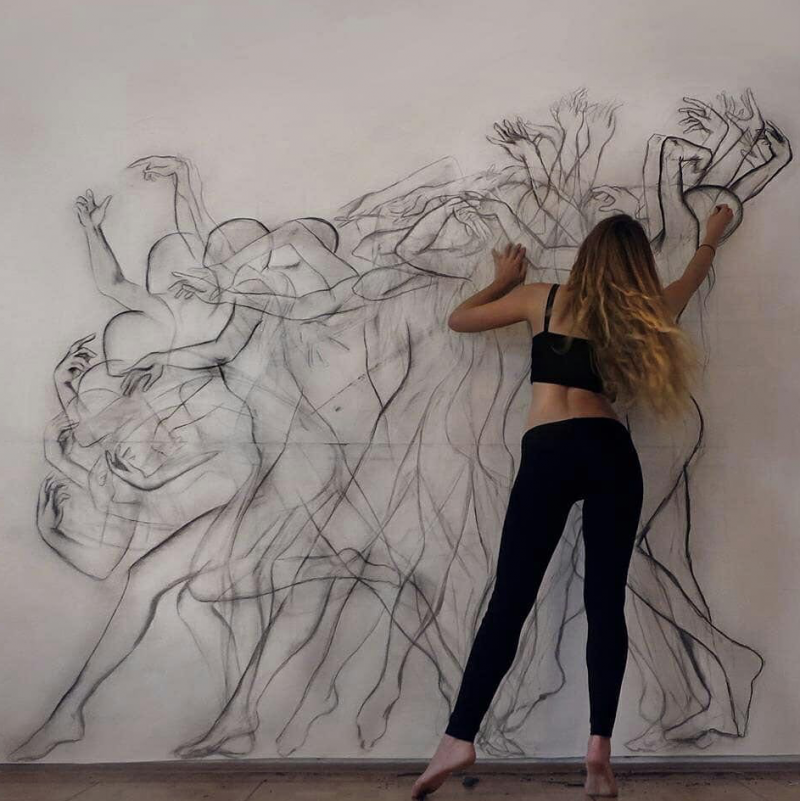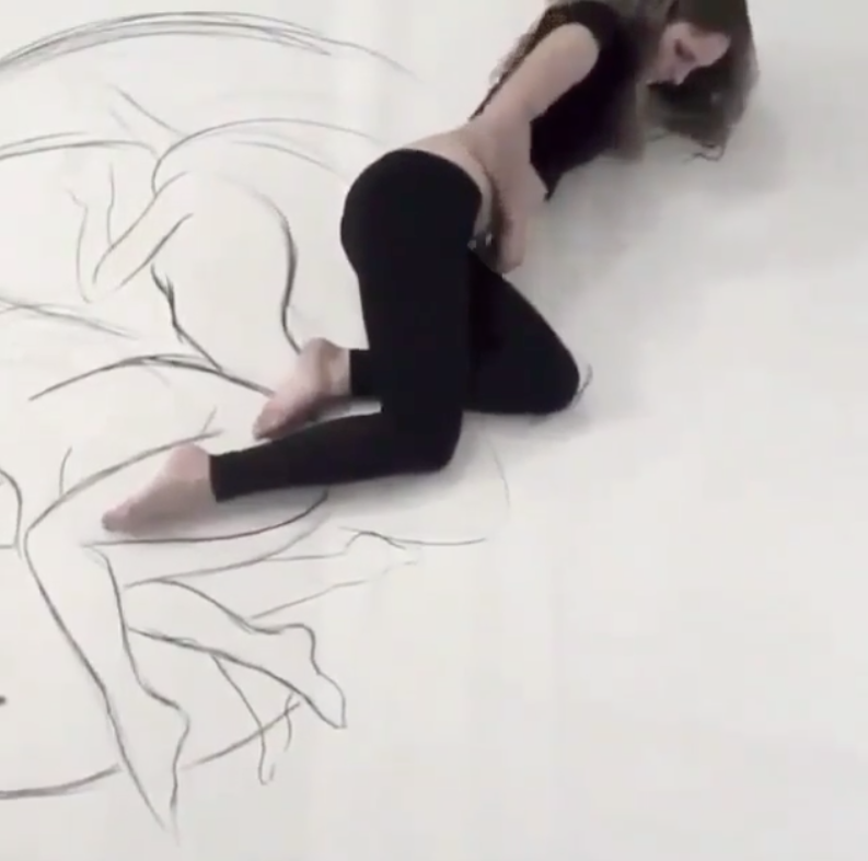 ▼雖然是平面的創作,但是Zarah最後的成品卻讓人看到一個動態的視覺。她利用畫筆將自己的身體姿態完整紀錄下來,整個編排到最後竟然變成身體舞動中的姿態,非常優美。