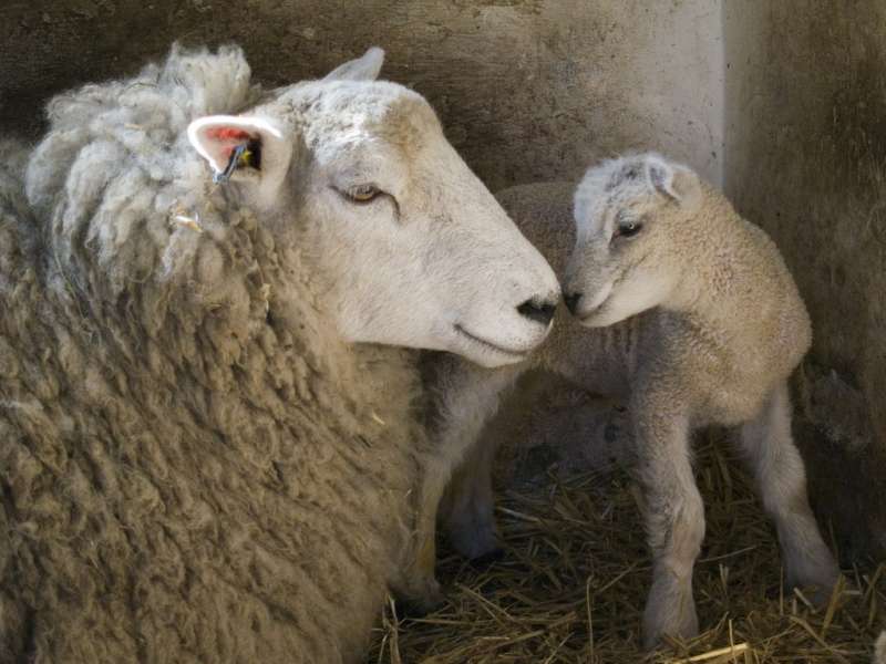 ▼溫柔的綿羊媽媽,與牠的寶貝相視而笑的一瞬間。