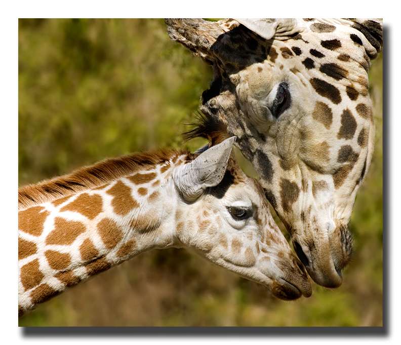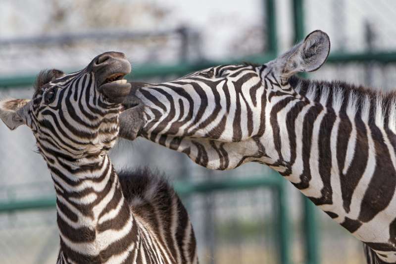 ▼斑馬媽媽與女兒正俏皮地互相親吻打鬧著,這是多麼溫馨動人的畫面。