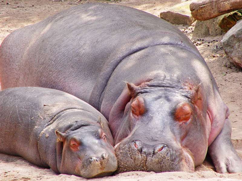 ▼河馬媽媽和牠的孩子依偎在一起,正睡得香甜呢!看著看著都讓人不禁想打個哈欠了~