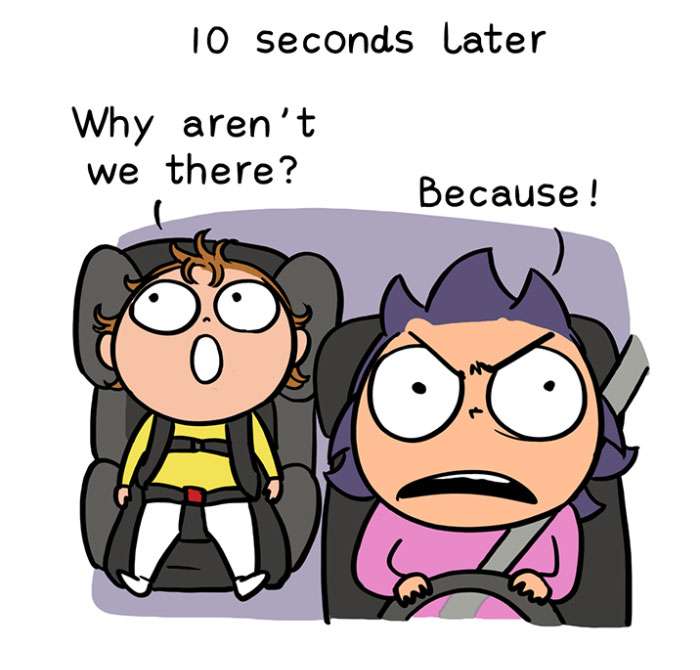 ▼使用武器:噪音。『場景2』- 車內猶如宇宙平行時空,五分鐘好比一小時~ 牛寶:「媽咪~我們要到了嗎?」、牛媽:「還沒呢!」