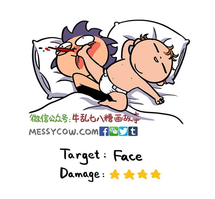 看完之後是不是也覺得,為人父母真的不簡單啊!其實除了暗器系列以外,育有二寶的牛媽,也另外用插畫分享了許多平日裡的帶娃歷險記,還有大寶跟二寶之間所受到的不平等待遇系列,讓許多已為人父人母的網友看得是笑中帶淚、悲喜交織啊!喜歡牛媽畫風的朋友們,也可以追她的微博和臉書,或關注微信WeChat公眾號 - 《牛亂七八糟畫故事》喔!