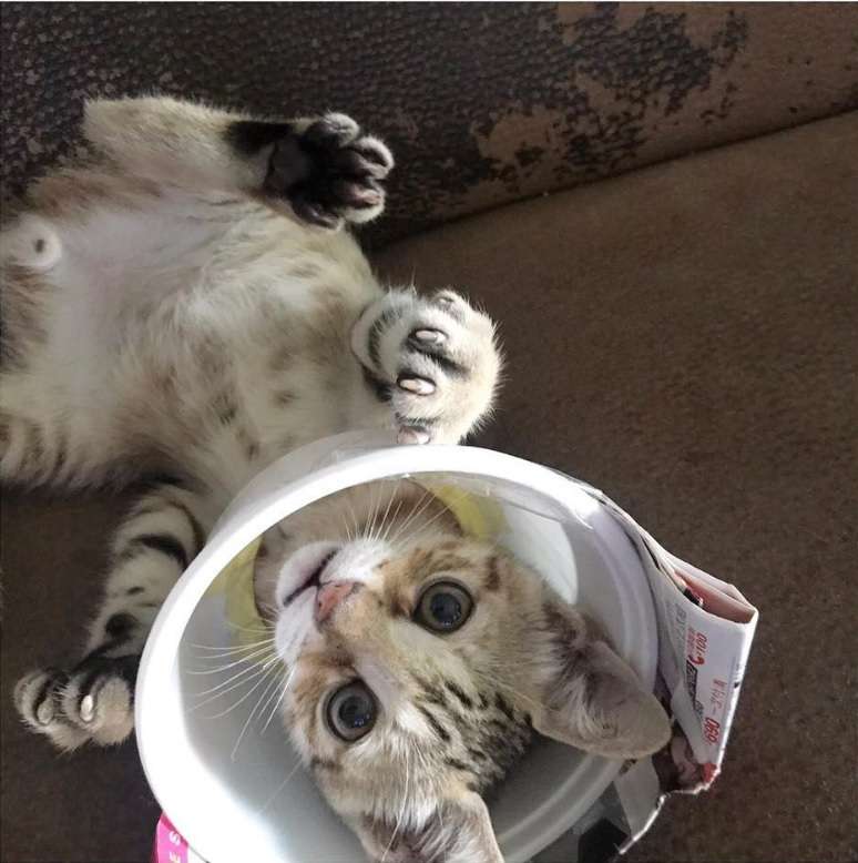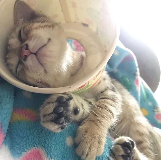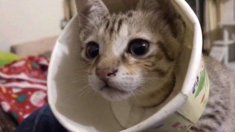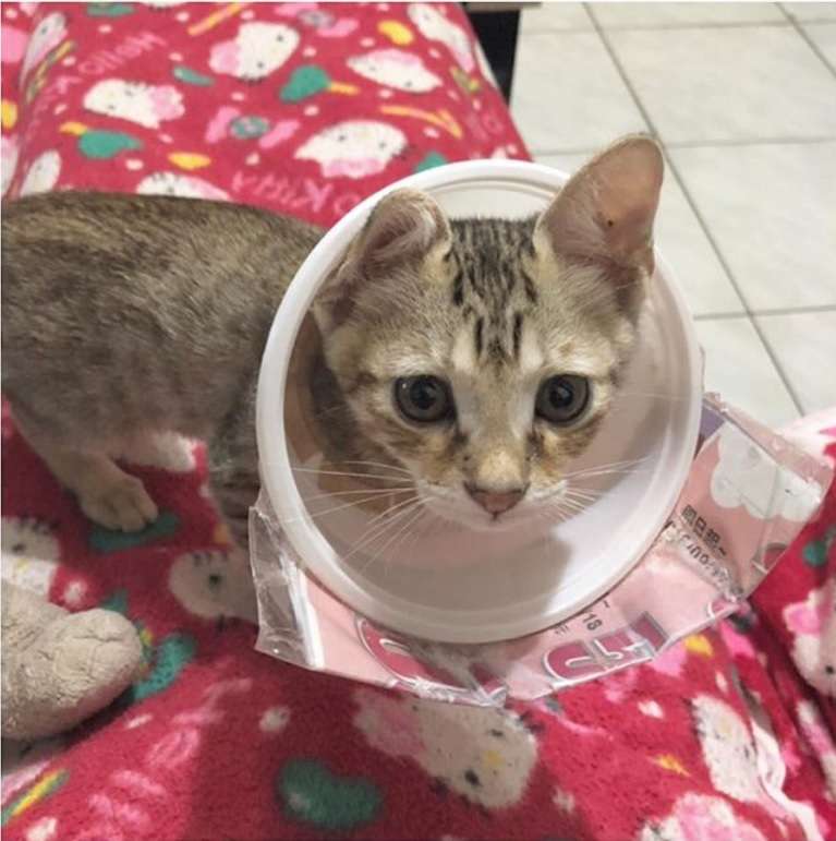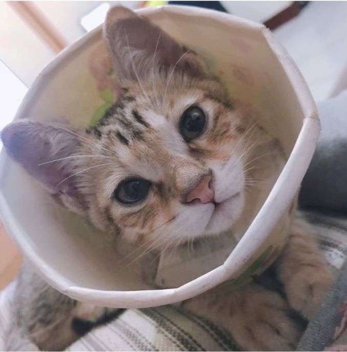 鏟屎官防亂舔傷口 紙碗羞恥圈讓牠秒變「萌貓麵」 網笑:老闆外帶這碗~