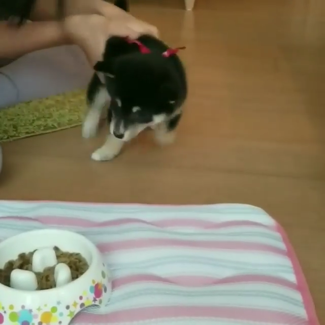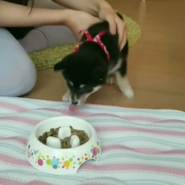 毛小孩跟小孩有一個非常不同的地方,毛小孩的飲食比較不需要鏟屎官們擔憂,放飯時間一到,總是口水直流的橫衝直撞,不用擔心牠們不賞臉,日本網友meichan__0502分享一段影片,原本想訓練家裡的小黑柴「等一下」的技能,但小黑柴完全不能領會主人的苦心,像是衝刺跑般直撲食物!