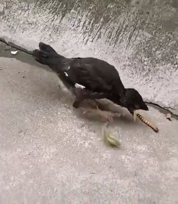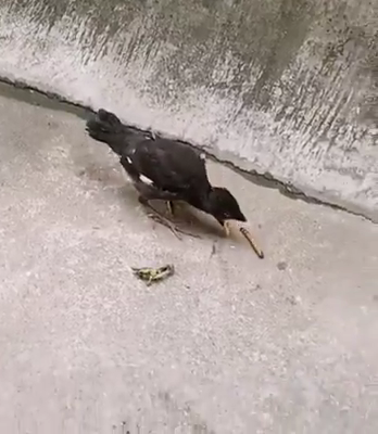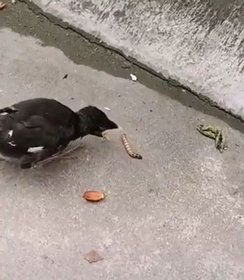 2018年10月15日動物在小時候總是特別天真可愛,一隻小八哥似乎還沒發現自己長大了這件事,發現路上有一隻蟲蟲,便張著嘴嘴跟著牠不放,似乎覺得只要張開嘴巴,蟲蟲就會自己跑到嘴巴裡了,呆萌的模樣笑翻一片網友。
