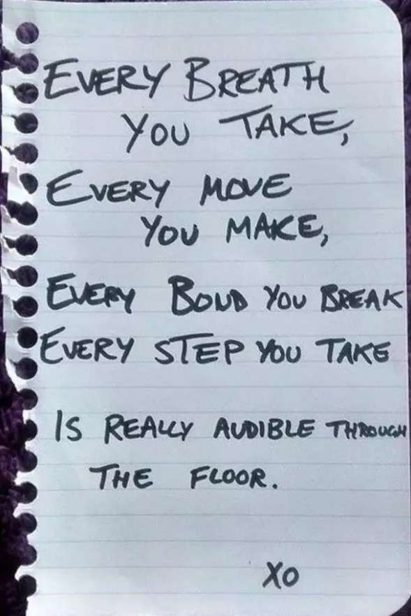 「你的每一口氣、每個動作、發出的聲響和腳步,都能穿越地板!」