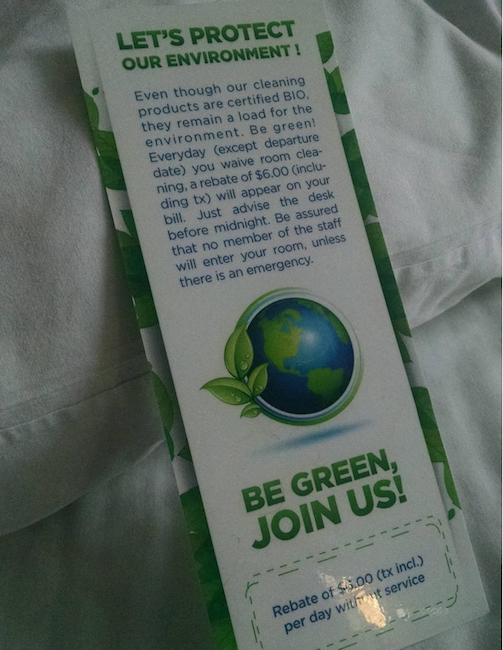 ▼加拿大魁北克的這間旅館,如果你拒絕每日的清潔房間的服務,會退費六元給你,感謝你減少環境污染。