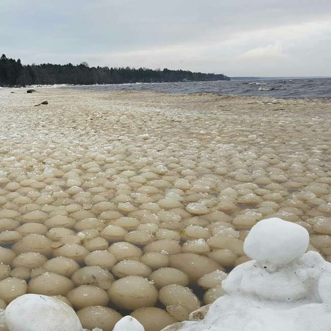 ▼14.芬蘭灣岸邊佈滿了一顆顆冰球。