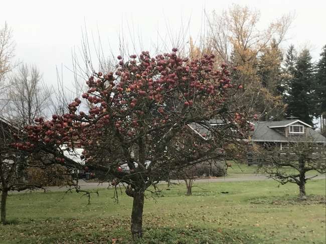 ▼18.葉子掉光但還掛滿果實的蘋果樹。