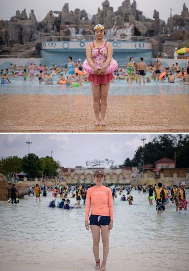 ▼北韓平壤文秀水上樂園的遊客與南韓加勒比海灣水上樂園的遊客。