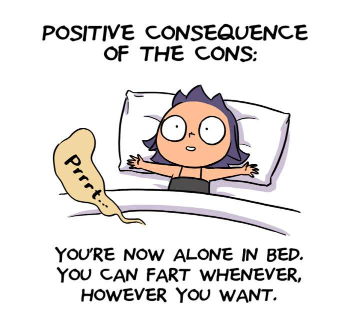▼這方法的優點就是:尊重你的另一半,同時也可以自由的放屁;不過缺點也很明顯,會干擾睡眠品質、太麻煩、冬天時很冷。