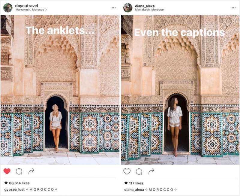 2018年10月16日Jack Morris和Lauren Bullen是一對熱愛旅行的情侶,他們常常在IG上分享自己的旅行經歷。在IG上擁有超高人氣的他們發現了一件超「詭異」的事,有人在偷偷模仿他們的旅拍作品。