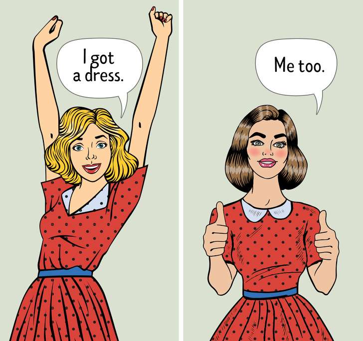 ▼9. 妳們的友誼就像一場比賽:妳說「我在促銷活動上買了一雙鞋子,才300塊!」她會說「我剛買了一雙Gucci的鞋子,但你的也很好看啦!」