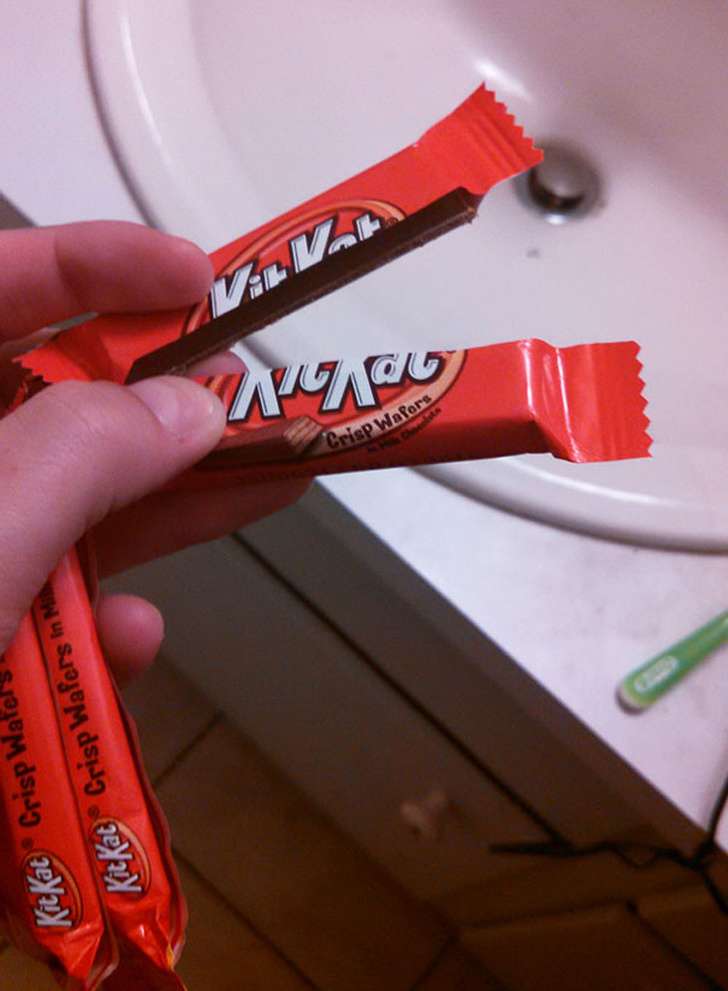 ▼直接將巧克力棒拗成兩半!