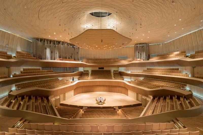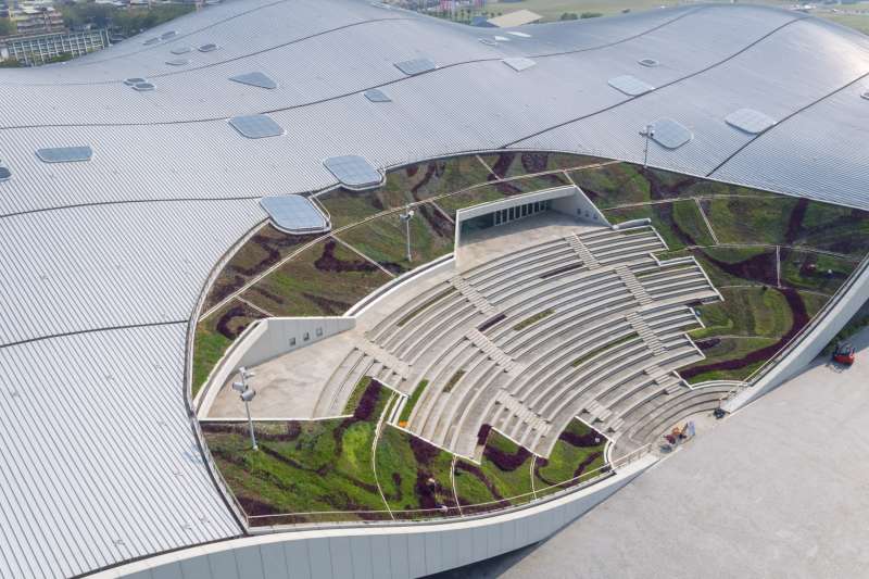 ▼衛武營國家藝術文化中心的主體建築由荷蘭建築師法蘭馨侯班(Francine Houben)設計,共有四個室內表演廳院,分別為2260席座位的歌劇院、2000席座位的音樂廳、1254席座位的戲劇院與470席座位的表演廳。