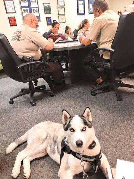 ▼於是最後Arctic成為了一隻療癒系的「社區治安警犬」,在全美僅有6隻,而且Arctic是佛羅里達州的第一隻,超值得驕傲一下的吧!但治癒犬的工作內容可不輕鬆,除了日常例行的社區巡邏,每天還要四處奔波。無論是幼兒園、學校裡、法庭上,甚至是來到案件受害者的身邊,只要需要Arctic的地方,就能看到牠忙碌穿梭的身影。