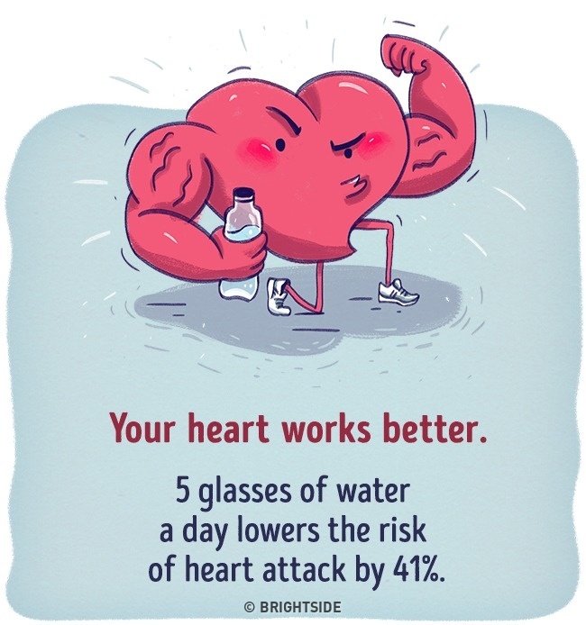 ▼心臟更有力:一天五杯水,罹患心臟病的風險降低41%。