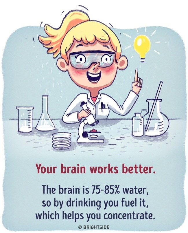 ▼大腦反應快:大腦的75%到85%是水,喝水就是為大腦提供燃料,多喝水還能讓你注意力集中。