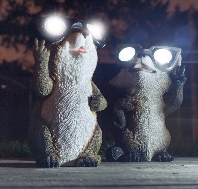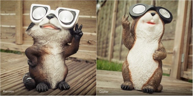▼太陽能花園燈:這些燈看起來就像可愛的浣熊、花栗鼠。太陽能燈不僅節能,還很可愛。