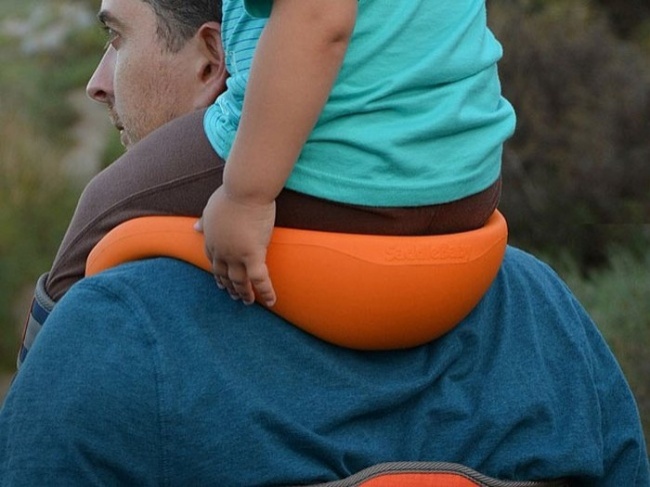 ▼孩子座位:將孩子固定在爸爸的肩膀上,這樣爸爸就能空出手拿手機或者相機。