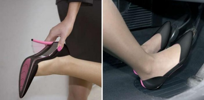 ▼變換鞋子:這是專為女司機設計的高跟鞋,開車時可以取下鞋跟,就像平底鞋一樣。