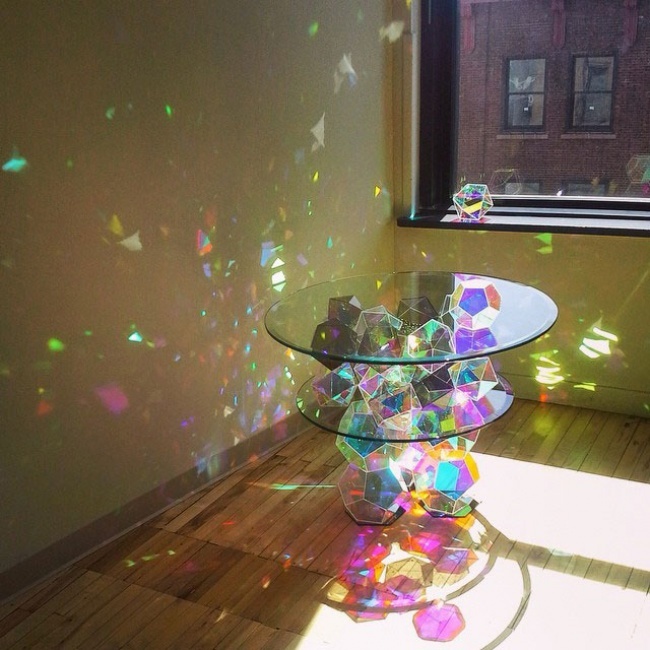 ▼彩虹咖啡桌:這是設計師John Foster的作品,陽光照進來後,桌子會反射出五顏六色的光,非常漂亮。
