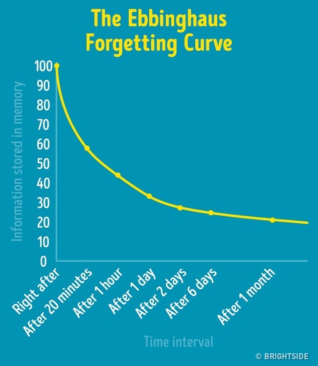 ▼原來是因為大腦會自動將一些無用的資訊過濾掉,以避免大腦超過負荷。不過因為大腦不會分辨這些新輸入的資訊是否有用,因此如果你沒有重複閱讀或使用這些資訊的話,這些資訊很快就會被你忘記了。
