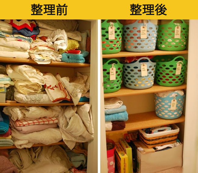 ▼2. 利用收納籃分別收納標示衣物,不僅好拿也整齊。