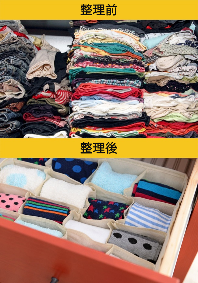 ▼17. 全部疊放在一起的衣物,不好拿取,利用收納格將衣物隔開,更方便取用。