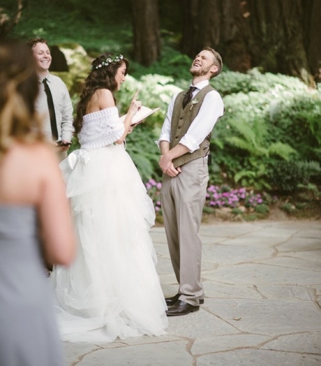 ▼新娘說:「我發誓,無論健康還是疾病都愛你,特別是在婚禮前一周,你傳染我感冒的時刻,現在我聽起來就像個90歲的老爺爺!」
