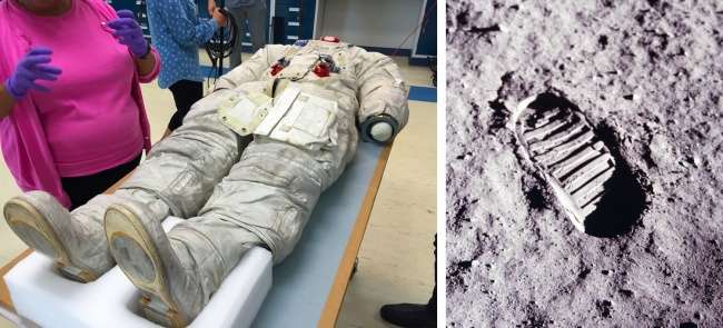 ▼阿姆斯特朗的宇航鞋和月球上的足跡不相符。