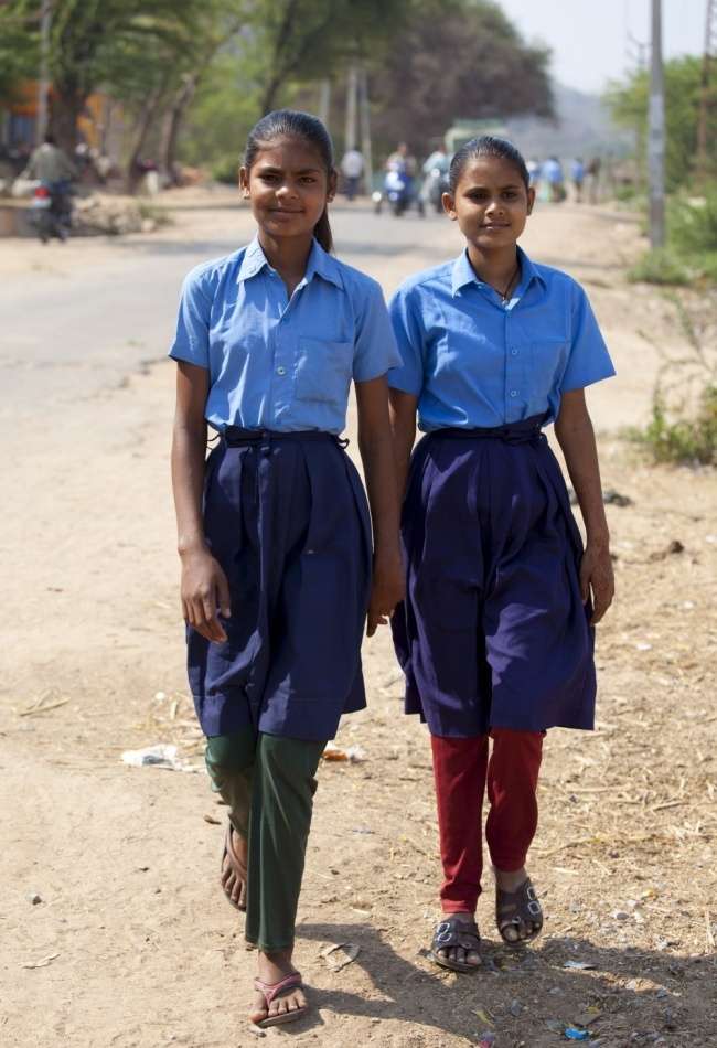 ▼印度:男生都是短袖襯衫搭配短褲和黑色鞋子,女生則是長度達到膝蓋的長裙,裡面再穿一件褲子。