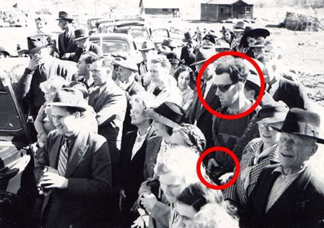 這張照片拍攝於1941年加拿大金橋開幕,在人群中站著一個穿著完全不像1940年的人,他穿著帶拉鍊的連帽衫,裡面是一件t恤,手裡還拿著一台便攜式相機。有人認為他是一個被鏡頭捕捉到的時間旅行者。