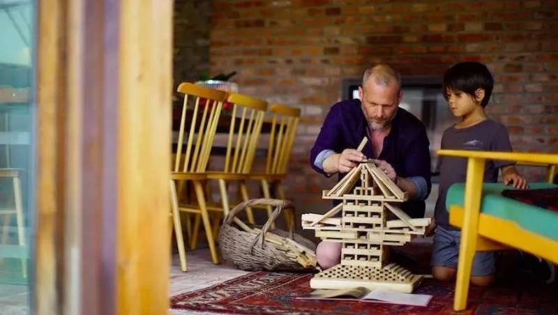 ▼Christian也會和兒子一起,玩一些自製的玩具。搭木條能夠鍛鍊想像力和動手能力,父子兩人都很喜歡。