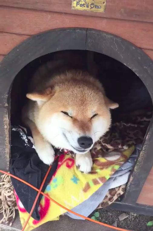 ▼那天柴柴正在自己的窩裡呼呼大睡,聽到馬麻的腳步聲,牠的臉上立刻有了笑容,就連眼睛都笑到瞇成一條線,好心情擋都擋不住。