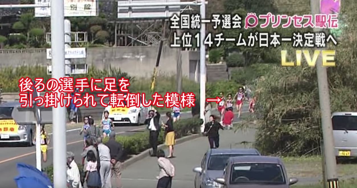 ▼畫面中可以看到飯田怜疑似與後方選手發生腿部碰撞,整個人瞬間倒在地上。