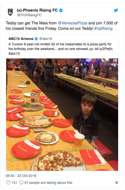 2018年10月24日舉辦生日會卻沒有同學來參加!來自美國亞利桑那州的Teddy非常心碎。Teddy的媽媽為了慶祝孩子6歲生日,特別在披薩店舉辦了一場生日會,邀請了32名同學來參加。沒想到期待中的開心派對完全沒有發生,留下兒子一個人落寞地盯著披薩看⋯