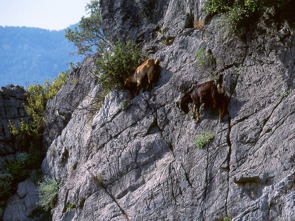 ▼這些山羊每天都貼在水壩牆壁上,因為那裡有豐富的鹽分和礦物質。